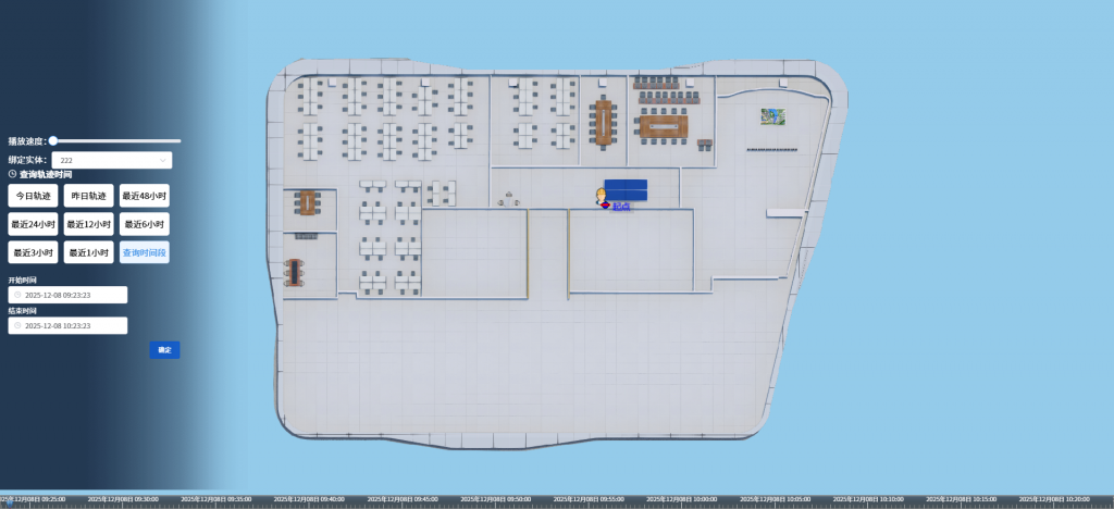 可输入指定人员姓名、时间段,查看该人员的历史活动轨迹和位置分布,出现异情可追溯事件全过程。