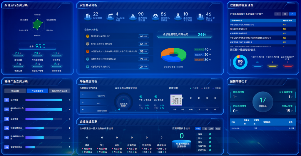 本项目围绕成都新材料产业化工园区安全风险管控体系建设,系统布局基础与提升两大功能模块。基础模块涵盖安全基础管理、重大危险源管理、双重预防机制、特殊作业管理、园区封闭化管理及敏捷应急管理,筑牢安全管理根基;提升模块则集成公共管廊管理、公用工程管理、综合监测预警分析、智慧驾驶舱、企业端安全风险智能化管控平台及统一移动端(APP),共同驱动园区安全管理向信息化、数字化、网络化、智能化纵深发展,全面提升园区监管效能与企业自主管理水平。